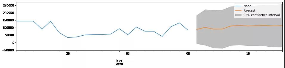 但需要注意,時間序列模型無法判斷相對于樣本較長期的數據預測,根據以往經驗,不得超過3倍q值或k值,否則會導致預測數據平穩化,從而失去算法預測意義。且置信區間會隨著預測周期的延長而變為喇叭狀,預測方差檢驗會越來越大,也就失去了判斷的標準。實際經營中,交易能力的判斷也許會影響商業調改、經營預警等等經營環節。