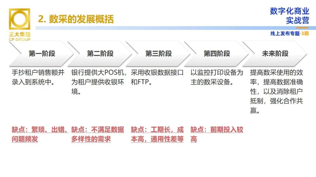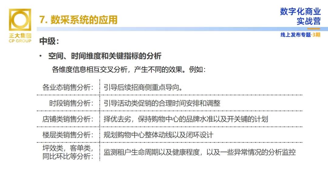 數據采集為正大商業帶來了哪些價值?向陽先生表示,數采對于商業運營來講分為初級、中級和高級階段。