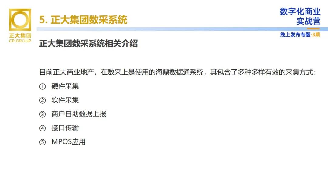 向陽先生表示,目前正大商業使用的是海鼎數據通系統,這其中包含了多種有效的采集方式,如:硬件采集、軟件采集、商戶自助數據上報、接口傳輸、MPOS應用等。