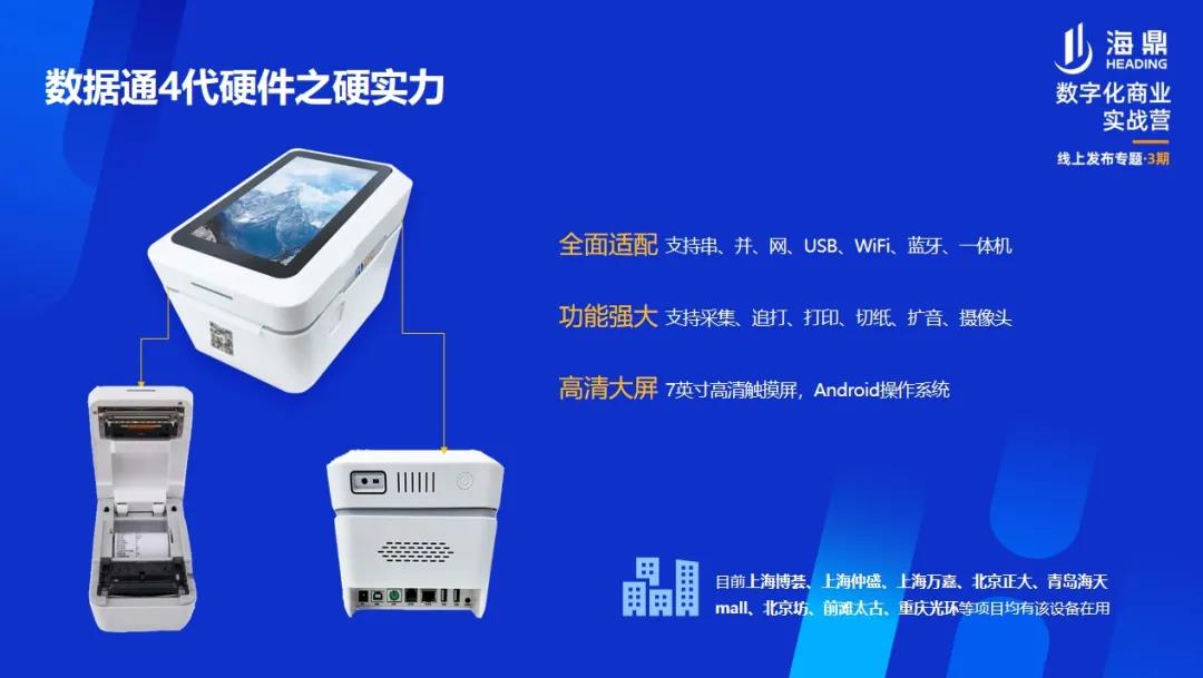目前,海鼎科技數據通4.0產品已經在博薈廣場、北京正大廣場、海天mall、前灘太古里、重慶光環購物公園等國內知名商業體中投入使用。