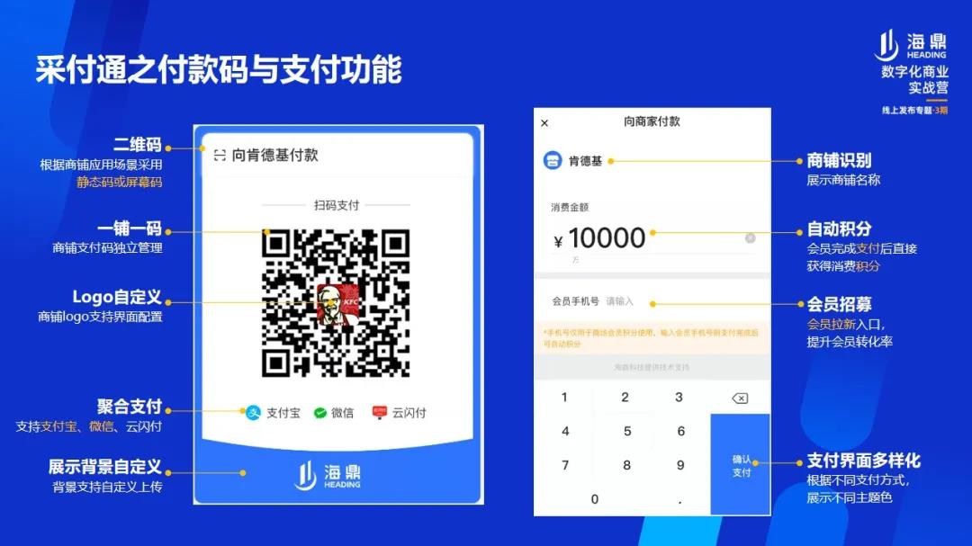 這套系統的好處是可以將數采全面覆蓋到整個商業運營中,比如:當硬件采集、軟件采集都不適用的情況下,標準的接口傳輸就派上了用場,它可以直接對接到商戶收銀系統進行數據匯總;另外,在面對沒有收銀系統的微小商戶時,海鼎科技為正大商業打造的MPOS就派上用場了。