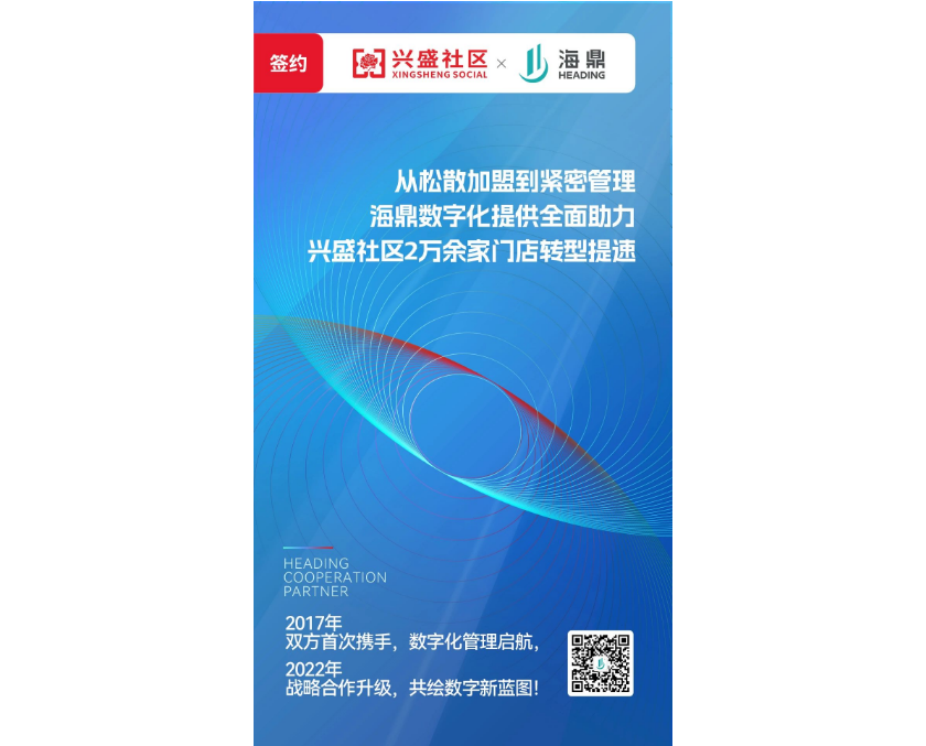 雙方的合作是興盛社區邁入新征程的重大舉措,也是海鼎在便利領域的又一次突破,海鼎項目團隊必將竭盡全力,全面助力興盛社區兩萬余家門店的數字化轉型升級,幫助興盛社區邁上新的臺階!
