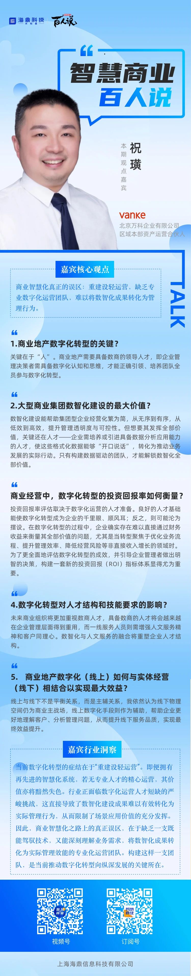 智慧商業百人說 | 萬科祝璜:“人”才是商業數字化轉型的關鍵