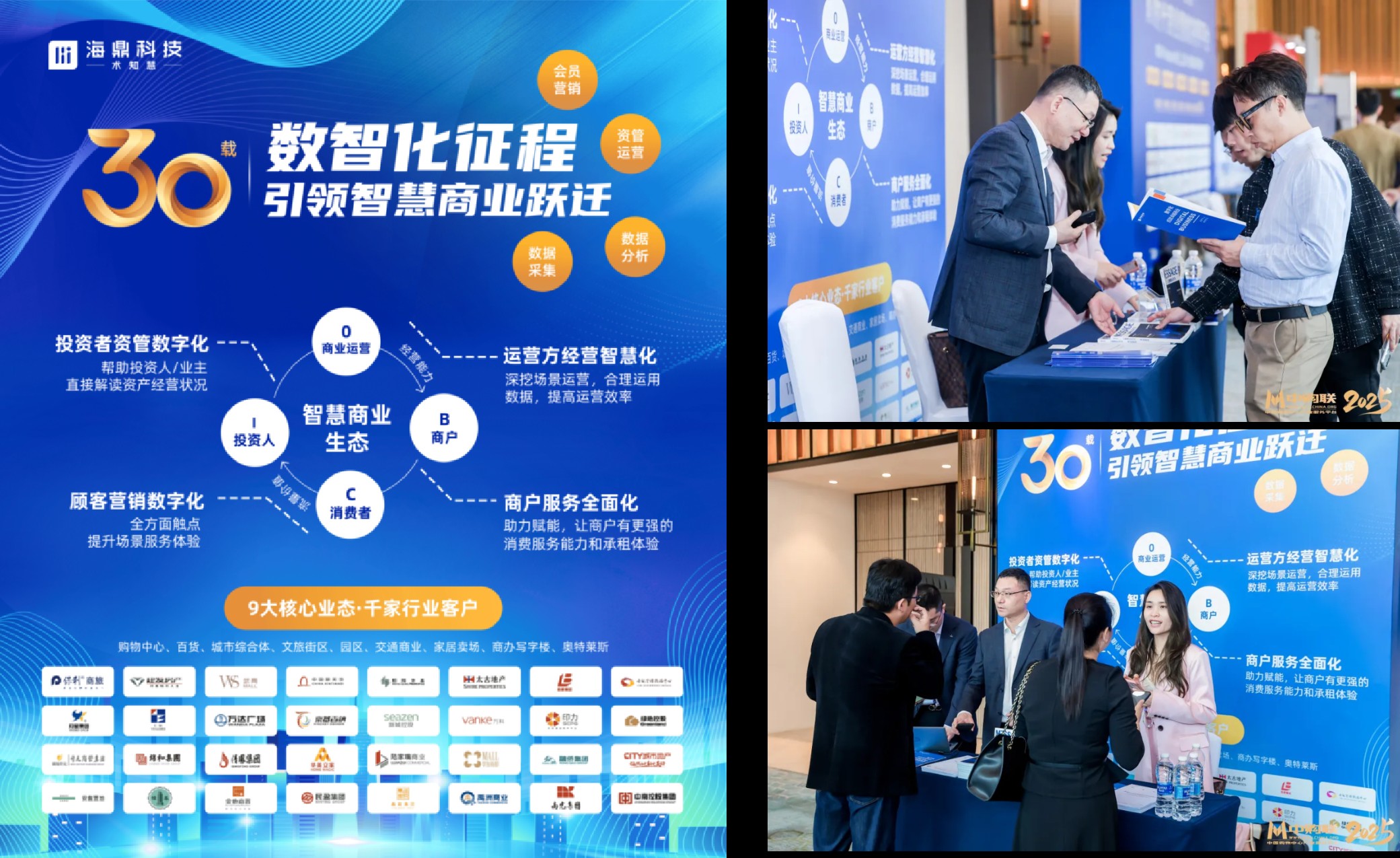 活動現場,海鼎科技以?“30載-數智化征程引領智慧商業躍遷”?為主題的互動展區成為焦點。展位互動中,海鼎科技以多年積累的豐富案例、行業標準與產學研成果,生動詮釋如何以技術賦能商業空間運營效率提升與消費者體驗升級。眾多參會企業代表與海鼎科技團隊展開深度交流,探討合作可能,展區熱度持續至大會收官。