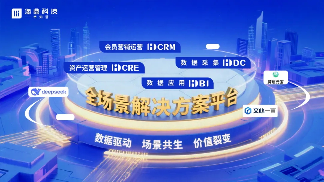 海鼎科技自主研發(fā)的數(shù)智化全場景解決方案平臺(tái),在整合DeepSeek、騰訊元寶、文心一言等主流AI大模型的同時(shí),結(jié)合海鼎科技智慧商業(yè)知識(shí)體系匹配調(diào)整,精準(zhǔn)度較通用模型提升30%,為資產(chǎn)運(yùn)營管理(HDCRE)、會(huì)員營銷運(yùn)營(HDCRM)、數(shù)據(jù)應(yīng)用(HDBI)、數(shù)據(jù)采集(HDDC)等核心產(chǎn)品方案注入“AI智腦”支撐,推動(dòng)商業(yè)地產(chǎn)從傳統(tǒng)空間租賃管理模式向“數(shù)據(jù)驅(qū)動(dòng)、場景共生、價(jià)值裂變”智慧生態(tài)進(jìn)化。
