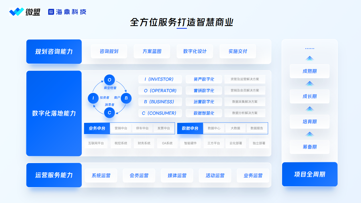 10月16日,海鼎科技聯合微盟共同推出全新升級版智慧購百解決方案,該方案以購物中心、百貨商業為代表,面向商業地產領域九大業態提供全鏈路、一站式的數字化落地服務。智慧購百解決方案不僅賦予了商業體多維數字化能力,更融合了微盟領先業內的圍繞“消費者運營”的方案策略,助力其實現穩健可持續發展。