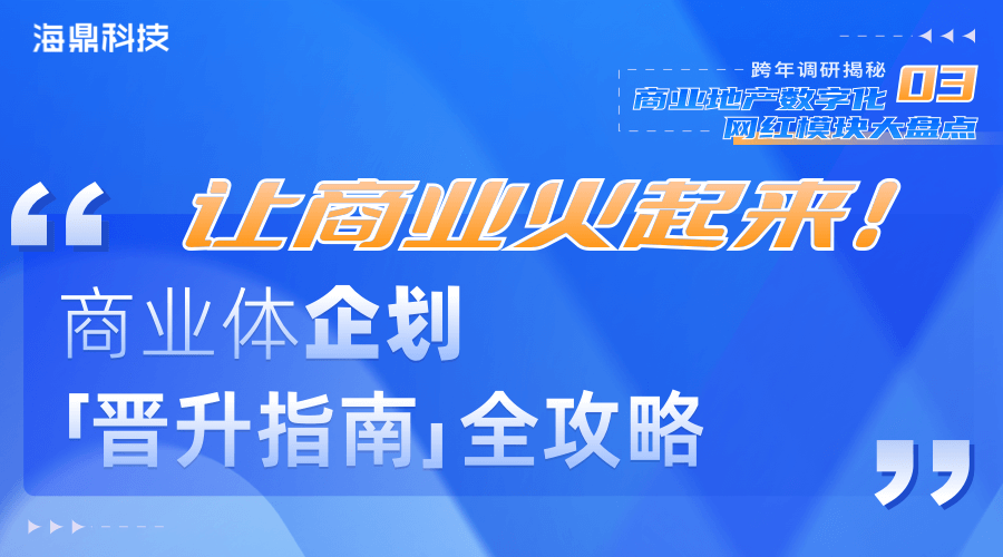 面對近些年來商業環境的劇烈變化,國內商業體正在如何優化管理,迭代升級?又有哪些商業體已經“全軍出擊”,走出了一條值得借鑒的“作戰路線”?2022年年末,海鼎科技啟動了新一輪商業地產客戶調研活動,基于豐富的行業合作資源,就商業體管理中的招商、營運、財務、企劃等重點板塊,進行一系列的深入溝通與調研。作為第三期的重點內容,海鼎科技此次為行業帶來了企劃板塊的線上分享內容:讓商業火起來!商業體企劃“晉升指南”全攻略。讓我們共同走進商業企劃升級的道路吧!